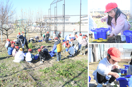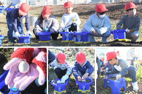 チューリップの球根を植えています。培養土と畑の土を混ぜ、鉢に入れて球根を植えました。何色のチューリップの花が咲くのか楽しみですね。