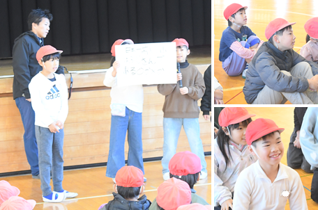 3年生が学年集会でレクリエーションを楽しみました。「〇✕クイズ」や「ドッジボール」を学年全員で楽しみました。