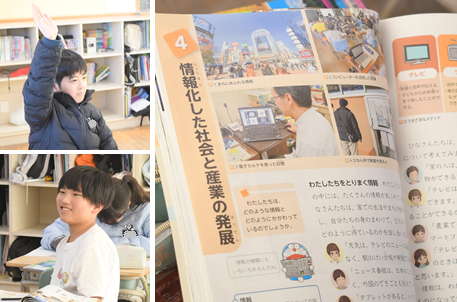 「情報化した社会と産業の発展」自分たちが、いろいろな情報とどのように関わって生活をしているかを考えました。
