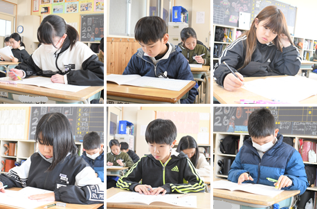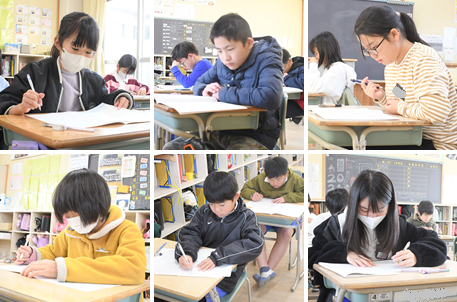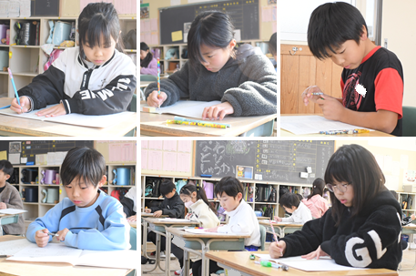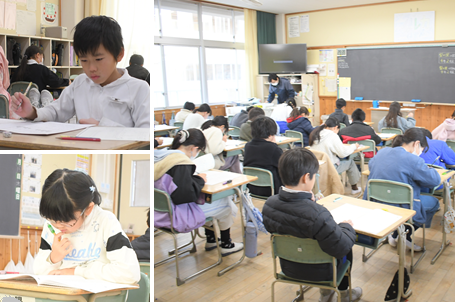 今日の1・2時間目は、1~5年生が国語と算数の学力テストを受けました。静かな教室からは緊張感が伝わってきました。みんな真剣に取り組んでいます。