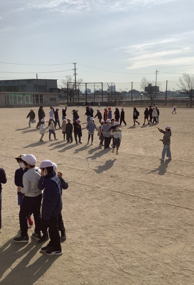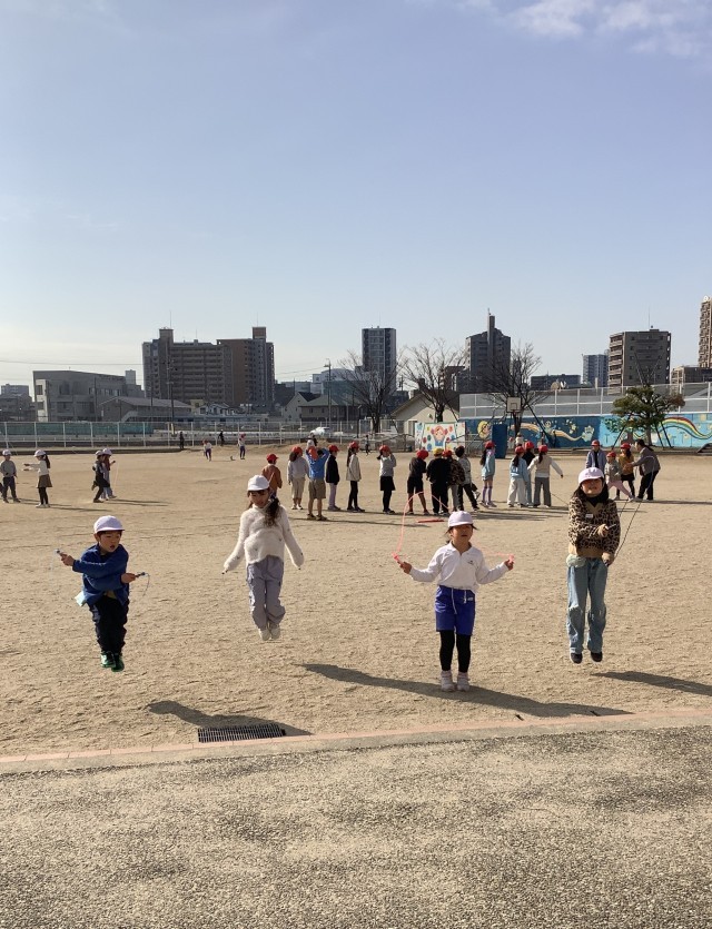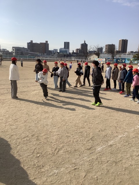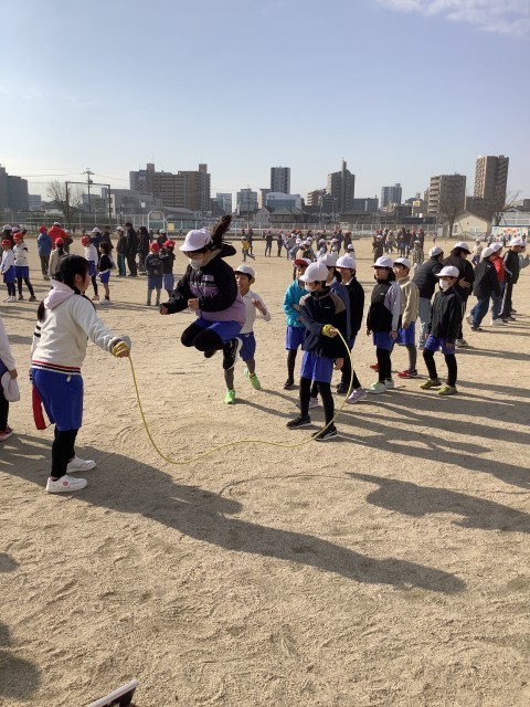 最高記録が出たり、うまく飛び越えたりすると、歓声が聞こえてきます。長縄跳び大会を通して、学級の団結力がさらに高まることを願っています。