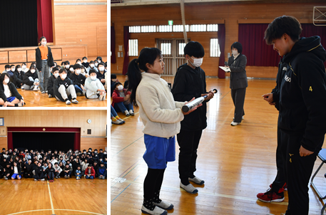 安城市スポーツ課の事業の1つにある、「ホームチームサポーター事業」を実施しました。ソフトボールJDリーグに所属する「デンソーブライトペガサス」の選手2名をお招きし、5・6年生に講話をしていただきました。子どもたちとキャッチボールをしたり、迫力のあるピッチングやバッティングを披露してくれたりしました。講話では、どうしてスポーツ選手という道を選んだのか、また将来の夢や希望について語っていただきました。