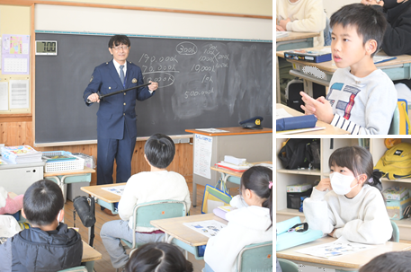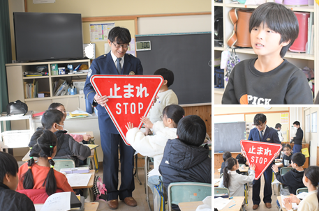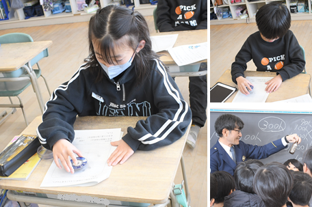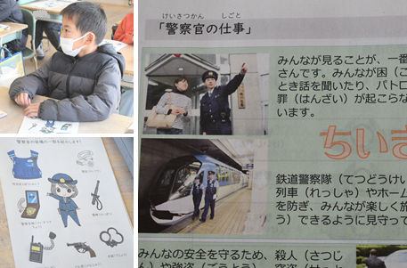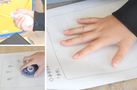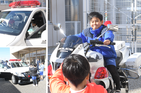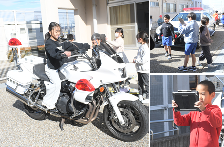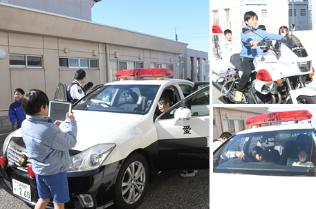 安城警察署の方をお招きし、警察官の仕事のお話や、警察官の持ち物などの紹介をしていただきました。指紋を採取する鑑識の活動の体験もさせていただきました。授業の後半はパトカーや白バイに乗る体験もできました。