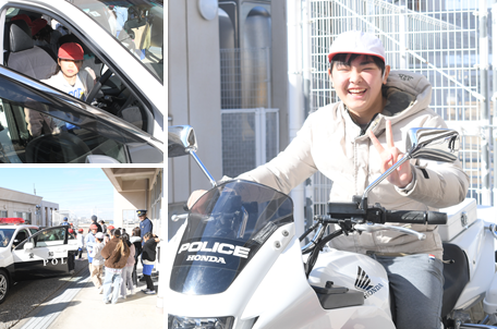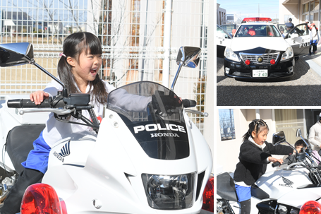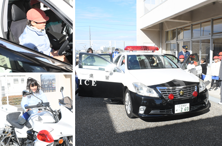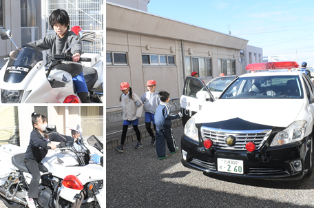今日の元気タイムは、パトカーと白バイが大人気でした。3年生の授業のために安城警察の方が西門付近にパトカーと白バイをとめておいたのですが、3年生以外の子たちも列を作って乗らせていただきました。
