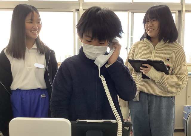 町内会事務局や地域ボランティアの方に来校いただくために、イベント係の子たちがお願いの電話をしました。