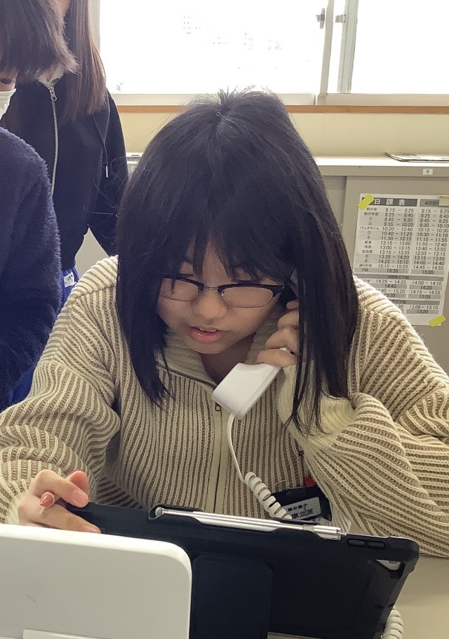 自分たちで依頼の具体的内容を考え、練習をし、電話をかけていました。相手の方から質問がきて少しパニックになっていた場面もありましたが、考えながら丁寧に対応していました。