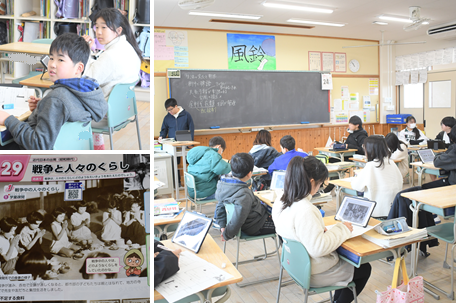 戦争中の人々のくらしと戦争による被害にについて勉強しています。戦争中は、食糧や衣類が国から配給されていたことを知りました。