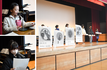 今日は全校集会がありました。校内全体のインフルエンザ等の罹患者も減少傾向にあるため、3学期に入って初めて全校児童が体育館に入りました。校長先生のお話では、現在行われているオリンピックの話があり、学級委員からは、学校に持参するキーホルダーのルールについて説明がありました。合唱クラブの発表もあり、最後は全員で校歌を歌いました。