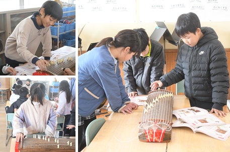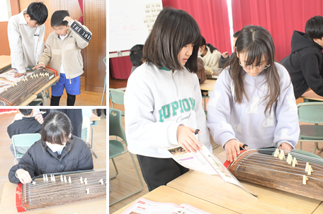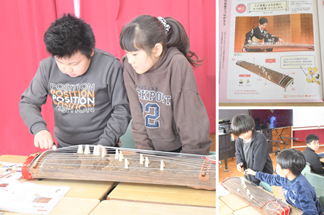 「琴」の授業です。なかなか触れることがない和楽器ですが、順番に「さくらさくら」の演奏をしました。