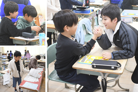 寒さの厳しい朝を迎えました。最近は朝と昼の温度差が激しいので体調管理には十分気をつけたいものです。今朝、登校後の子どもたちの様子です。