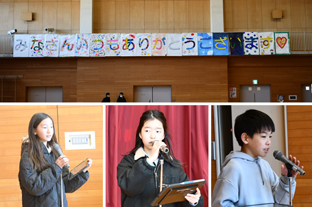 今日は1時間目に「梨っ子ありがとうの会」がありました。日頃、ボランティアでお世話になっている地域の方々をお招きし、感謝の手紙を渡しました。ボランティアの方からのお話を聞いた後、一緒にクイズを楽しみました。最後に校歌のプレゼントをしました。今までありがとうございました。そして、これからもよろしくお願いします。