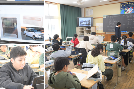 歴史の学習も東京オリンピックの時代まできました。3C(車、クーラー、カラーテレビ)が普及した頃です。産業の発展で人々の生活がどのように変化したかを勉強しています。