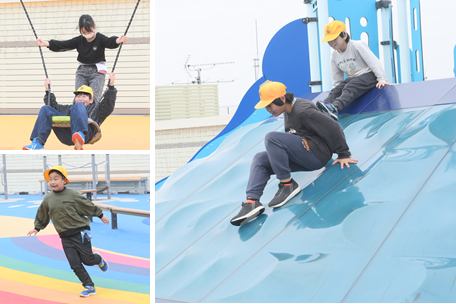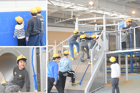 みどり・わかば学級が、お別れ遠足で「ららぽーと」と「篠目公園」に出かけました。昨日は雨で延期となりましたが、今日はとても良い天気となりました。学校から歩いて移動するには少々時間がかかりましたが、屋上の広場では元気に遊んでいました。