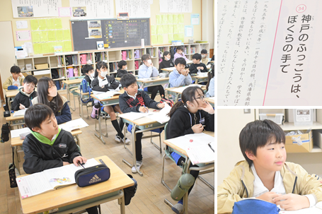 「神戸のふっこうは ぼくらの手で」1995年1月17日に発生した「阪神・淡路大震災」のお話です。避難所生活を送る中で、みんなのために働くことの大切さを考えました。