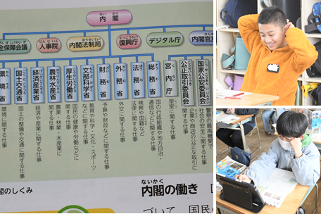 公民の学習です。国の政治の仕組みや、国会の働きについて勉強しています。