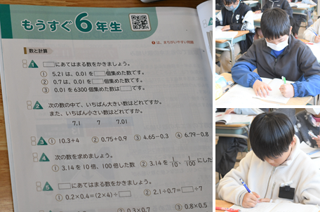 「もうすぐ6年生」算数の友を使って5年生の復習をしています。