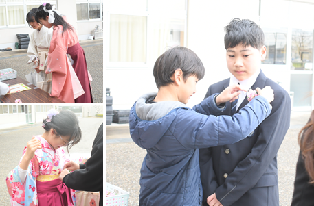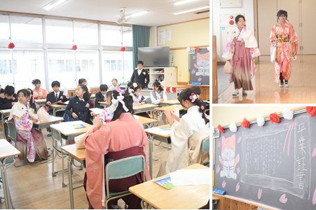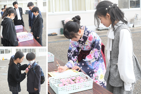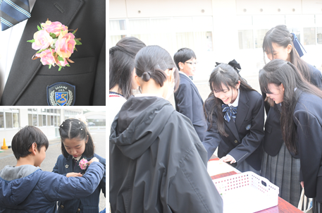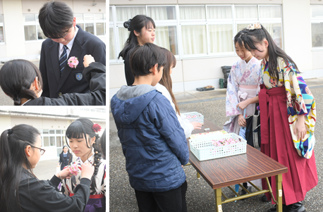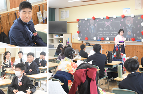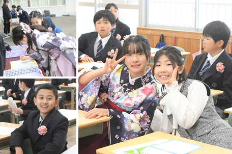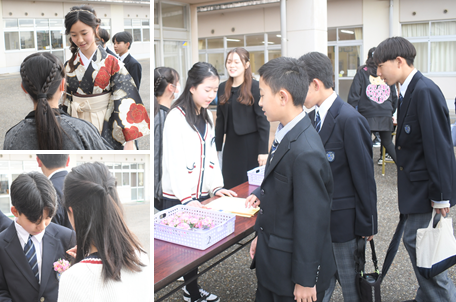 降り続いた雨も、卒業生が登校する頃にはあがっていました。受付を済ませて、教室で卒業式が始まるまで待機している卒業生の様子です。