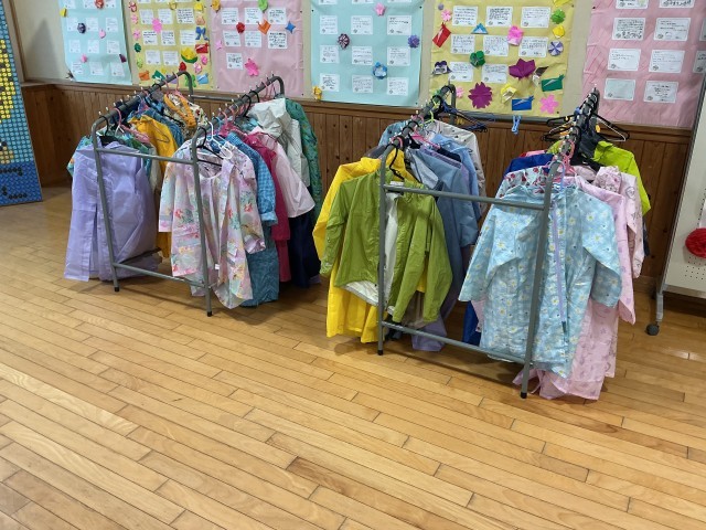 今日は朝から大雨でした。「靴がびしょびしょになった」「替えの靴下があるからよかった」など、友達とつぶやく声が聞こえてきました。