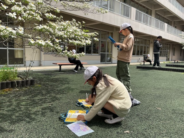理科の授業で花の様子を観察していました。スケッチしたりiPadで写真を撮ったりして…。