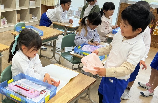 8時過ぎ、1年生の教室に入ると、あちらこちらで楽しい会話が聞こえてきました。保育園等で仲良しだった子でしょうか、それとも小学校に入ってから仲良くなったのでしょうか、少しずつ、交流が生まれています。