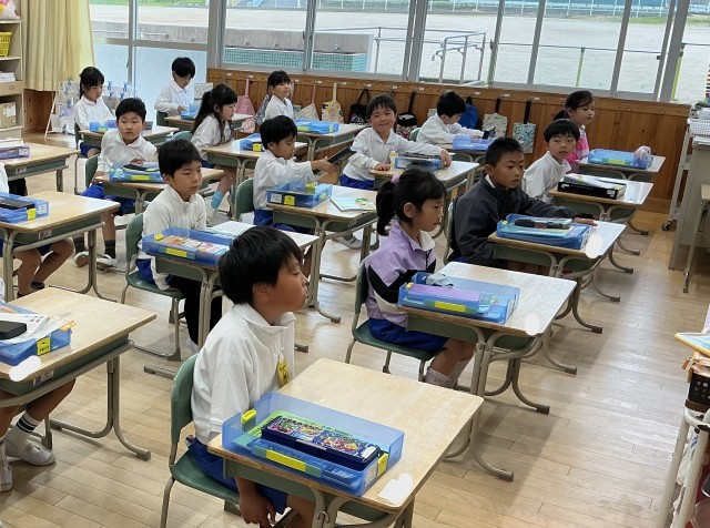 朝の会が始まるときには、自分の席について話を聞く姿勢になっていました。小学校の朝のリズムが身に付いて来ています。