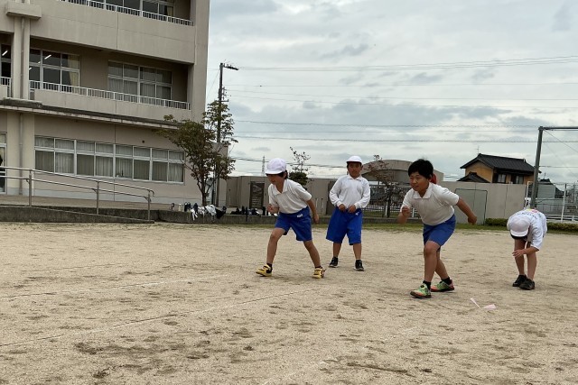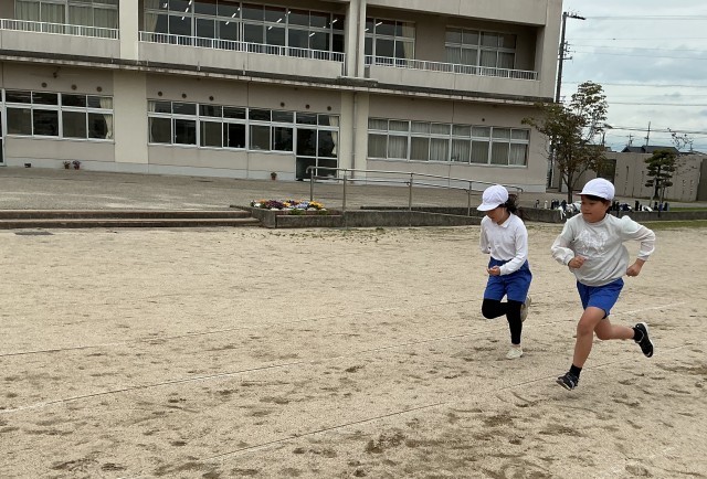 5月に実施する体力テストに向け、50メートル走の練習をしました。いろいろなスタートの仕方を試した後、スタンディングスタートの姿勢をしっかりとってスタートすることが、より良いタイムにつながることに気づきました。