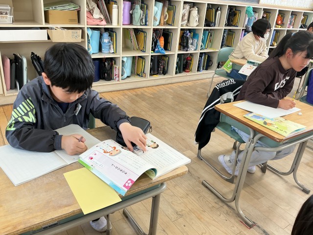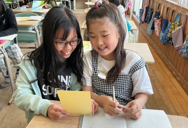 ある学級では、カードを書いた後、その友達に読んであげていました。ほっこり笑顔になる時間でした。