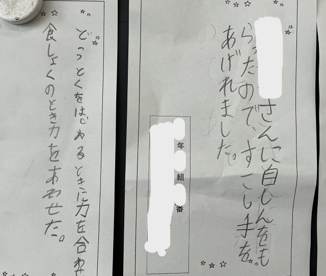 学習の最後には、実際に、うれしいな、楽しいなと思ったことを「きらきらカード」に書きました。