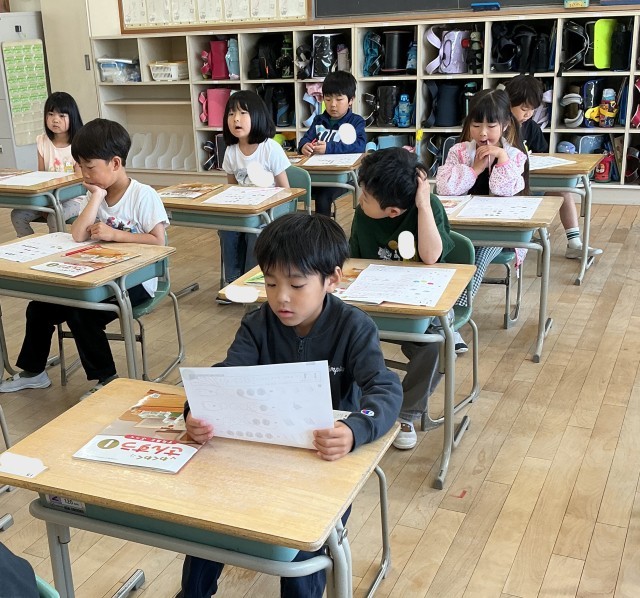 1年生の子どもたちは、数字や平仮名が鏡文字になりやすいです。今日も自分のテストを見ながら、「あ、ほんとだ!」と言って、ひっくり返っている数字に気が付