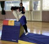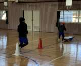 体育館で様々な運動を組み合わせたサーキットを行いました。できるまで何度もチャレンジして、できることが増えてきました。