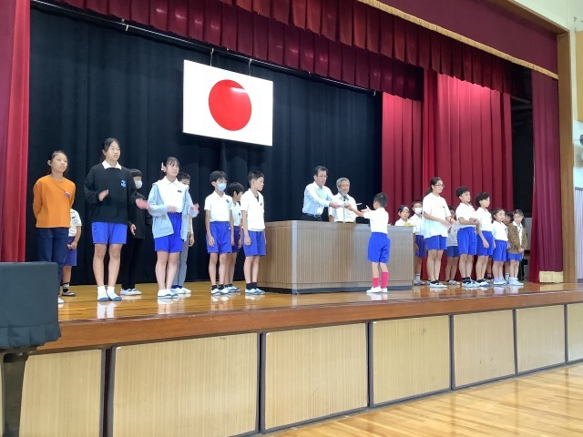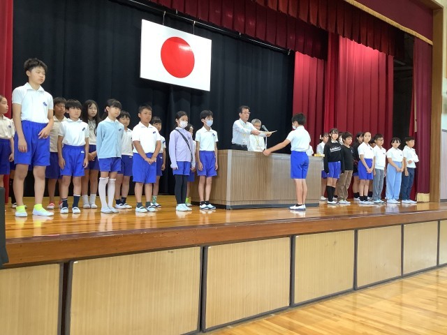 今日は、全校集会で後期の委員会委員長と学級委員の任命を行ったり、いろいろな大会で活躍した児童の表彰を行いました。委員長や学級委員は各組織のリーダーとして、学校や学級をよりよくするためにがんばってくれることと思います。全校のみんなでリーダーたちを支え、よりよい学校、よりよい学級を作りましょう。