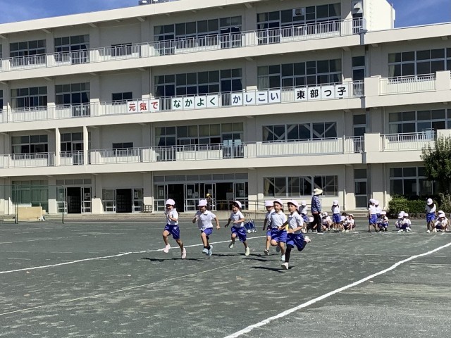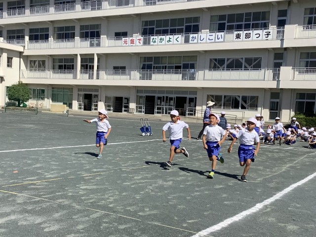 1年生が、徒競走の練習をしました。今日の練習では、本番と同じように実際に走ってみました。力いっぱい走る子ども達の姿が印象的でした。