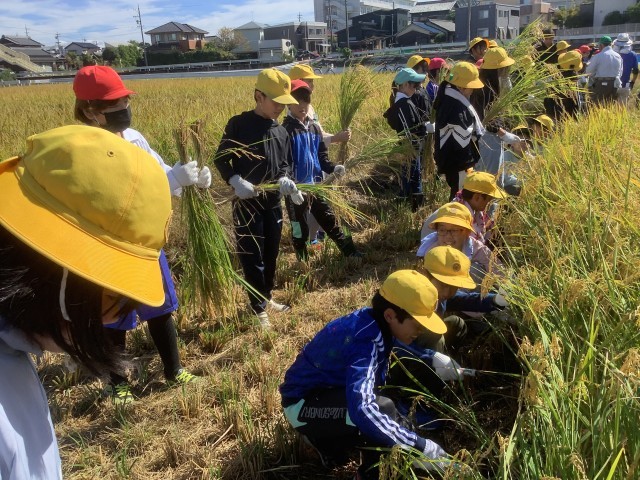 5月に田植えをしたお米の稲刈りをしました。
