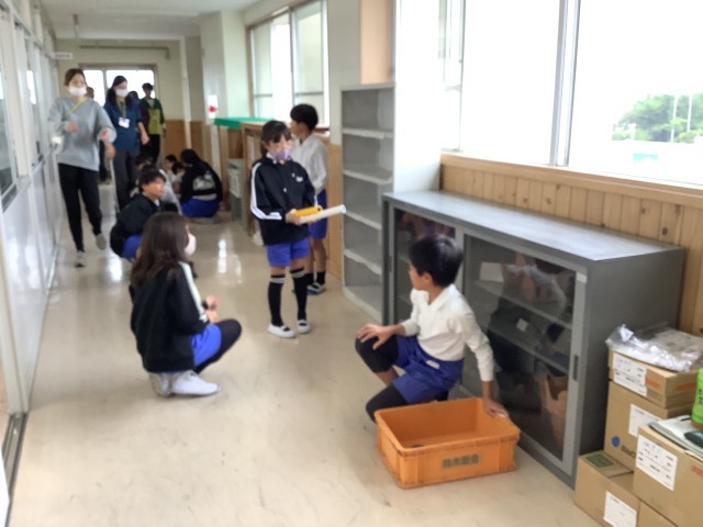 明日の運動会に向けて、5・6年生が準備をしました。あいにくの天候だったため、室内で放送原稿を読んだり、実際の動きを想定して係の内容を確認したりしました。