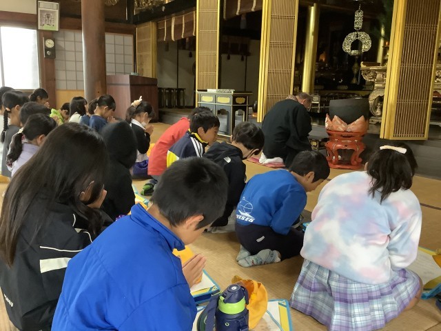 1年生が、郷土の日で大岡白山神社と貞印寺に行きました。神社に植えられているどんぐりの木やお寺の歴史について学びました。
