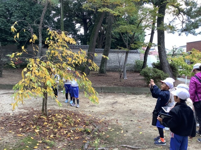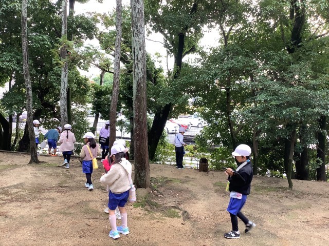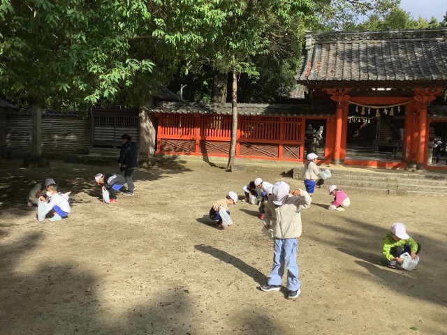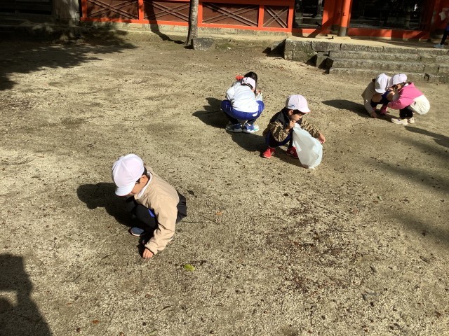 1年生が、大岡白山神社に秋見つけに行きました。色づいている木々や落ちている木の実に秋を感じる子ども達でした。