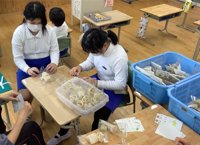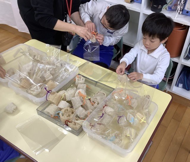 なのはなでは、きれいにラッピングして、お店を開く準備をしています。