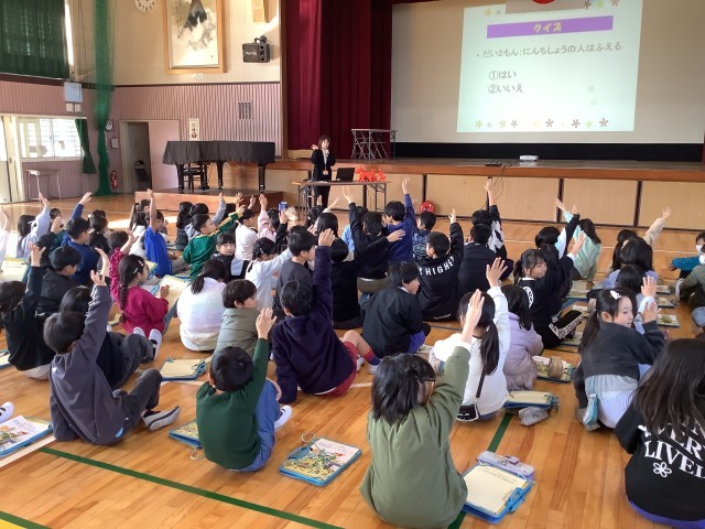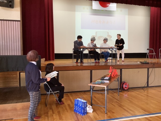 キャラバンメイト・ボランティアの方々を迎え、認知症について学びました。認知症とは何か、どういう症状がおこってしまうのか、これから認知症の人と関わっていくうえで大切なことをを劇やクイズを交えてわかりやすく教えてくださりました。キャラバンメイト・ボランティアの方々ありがとうございました。