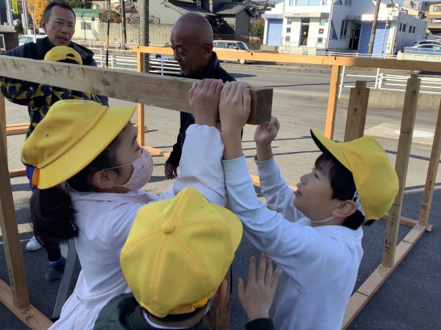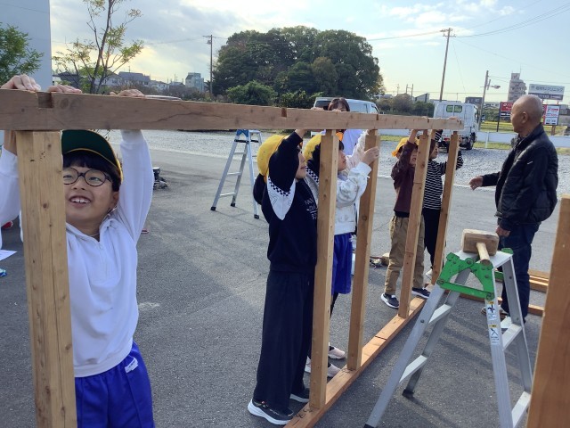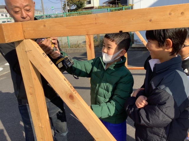 11月27日から3日間ひらき建設へ町たんけんに行きました。ひらき建設では、木を使って簡単なお家を作りました。お家を作るには、一人では難しくチームワークが大切だということを学びましたね。また、1・2回目の町探検を生かして、すてきをたくさん見つけることができましたね。