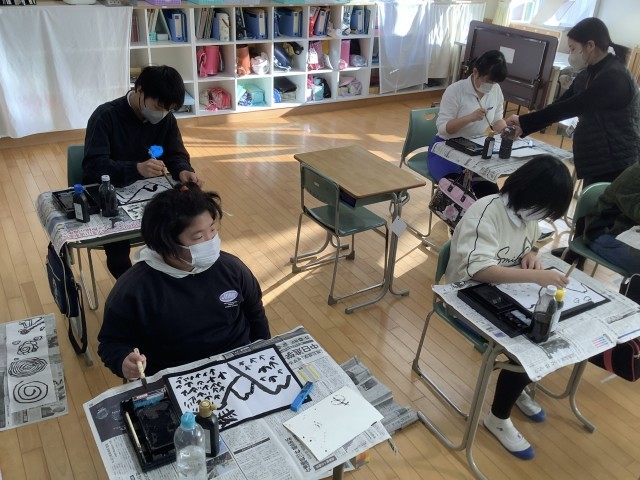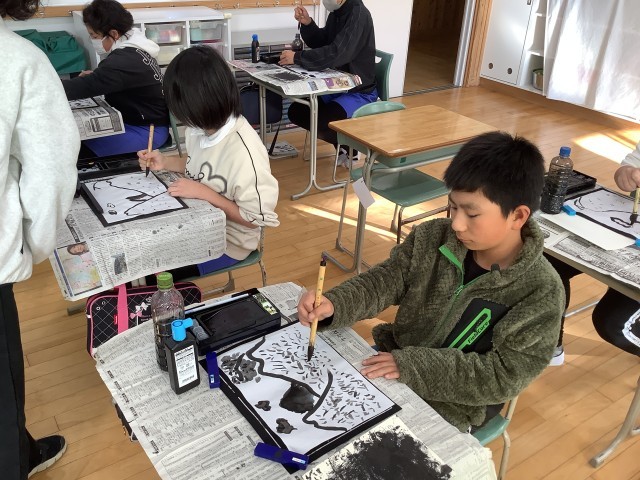 筆に水を含ませて書くと、薄い色がにじんできれいでした。