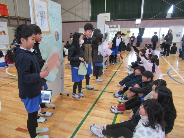 4年生が校内学習発表会を行いました。3年生を招待し、1年間のひらき学習の学びの成果を伝えました。グループ発表では、18のブースに分かれ、それぞれのグループが追究した環境に関するテーマを発表しました。今日の発表を振り返り、来週の公開学習発表会に向けて、さらに良い発表を目指し、発表の練習に取り組んでいきます。