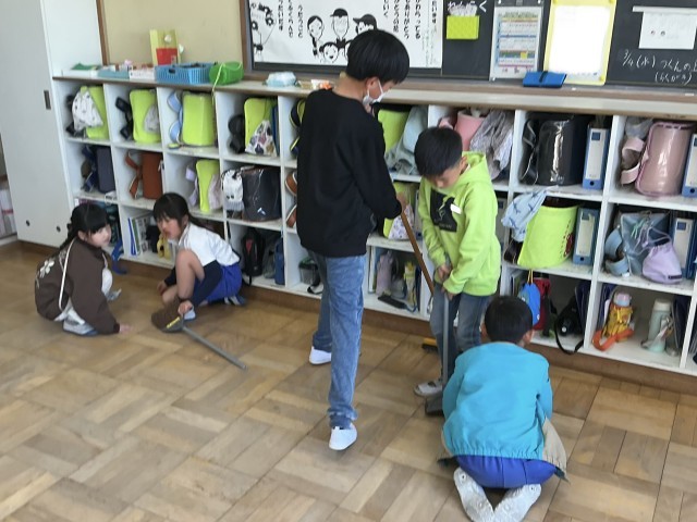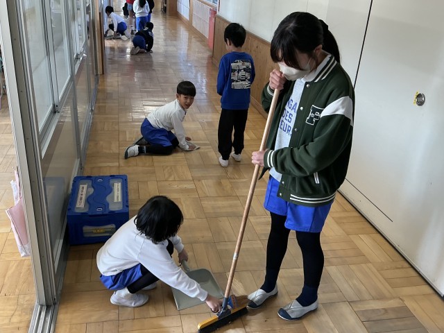 1年生が担当の清掃場所には、いつも6年生がお手伝いに来てくれています。時間いっぱいまで掃除をしたり、優しく声をかけてくれたりする6年生の姿は、1年生の憧れです。6年生の皆さん、1年間ありがとうございました。卒業までの残りの日々もよろしくお願いします。