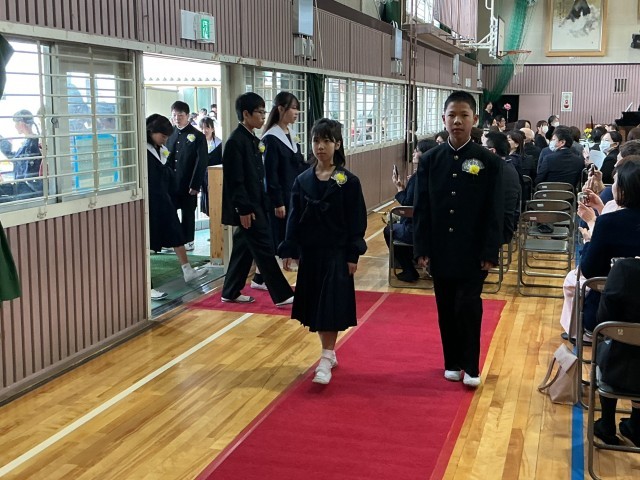 6年生の皆さん、ご卒業おめでとうございます。厳かな雰囲気の中、卒業生が凛々しい表情で入場しました。