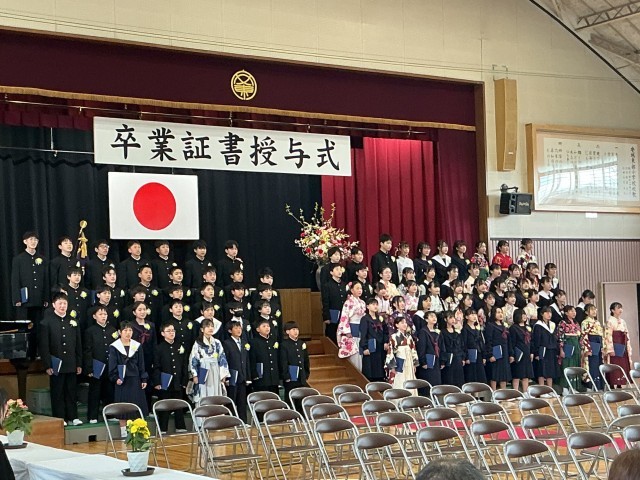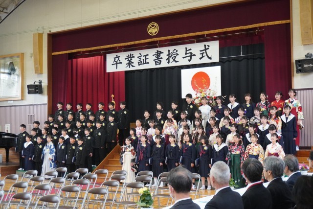 卒業生の素晴らしい歌声が体育館中に響き渡り、感動的な卒業式となりました。卒業生の皆さん、安城東部小学校で学んだことをもとに、中学校でも頑張ってください。