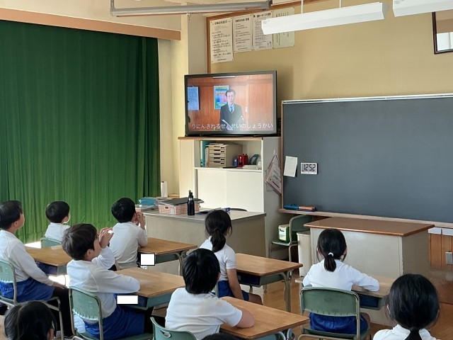 今日は離任式を行いました。校長先生から転任された先生の紹介があり、その後、お世話になった先生方のメッセージビデオを見ました。どの子も、先生の話を真剣に聞きながら、少し懐かしい気持ちになっていたようでした。