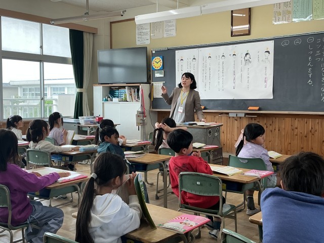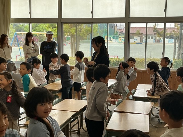 今日は、授業参観でした。おうちの人に見ていただいていることもあり、みんないつも以上にがんばっているように感じます。写真は、なのはな組と1年生・2年生の様子です。