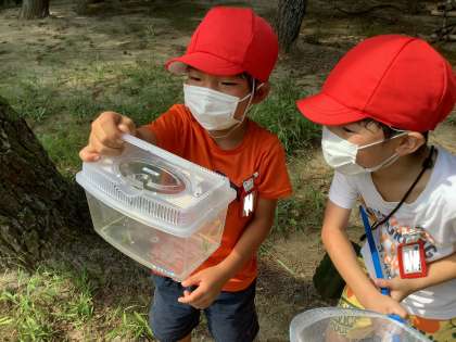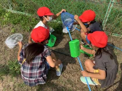 ゆたか公園と大岡白山神社に、秋の生き物を見つけるために公園探検に行きました。バッタや、カエル、カマキリなどを見つけたり、捕まえたりすることができました。これからも秋見つけを続けていきます。