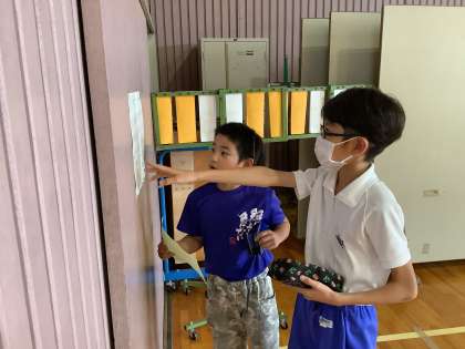 今日のロングタイムはペア企画がありました。ペアで仲を深めるための学校探検クイズを楽しみました。