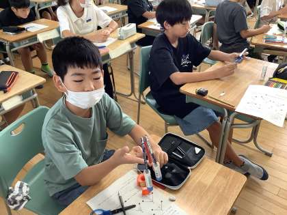 5年生はサイエンス工作を行いました。科学の原理を学び、おもちゃを作って遊びました。