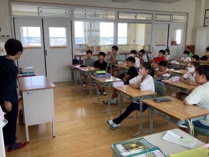 今朝は読み聞かせがありました。読み聞かせボランティアの方が読んでくださる話を集中して聞いていました。